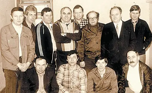 Фото на память во время субботника, 1990. Цвет прокуратуры РСФСР (во втором ряду слева направо): Борис Исаенко, Борис Тарасов, Владимир Данилов, Борис Уваров, Владимир Фёдоров, Евгений Мысловский, заместитель прокурора РСФСР Иван Землянушин, начальник следственной части прокуратуры РСФСР Евгений Лисов; (внизу слева направо): Александр Добрынин, Евгений Ильченко, Александр Филин, Исса Костоев