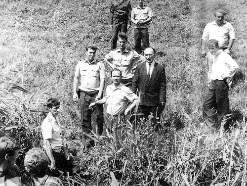 Следственный эксперимент: маньяк-поэт Муханкин показывает, где он закопал очередную жертву (справа от Муханкина – Яндиев)