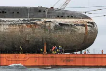 | Списанные атомные подлодки стали разменной картой на переговорах Москвы и Запада: вы нам – деньги, мы вам – утилизацию. В 2002 году в канадском Кананаскисе лидеры «большой восьмерки» взяли на себя обязательство ассигновать до 20 миллиардов долларов США на решение ряда проблем ядерной безопасности в России. Работы активизировались. На строительство площадки для хранения реакторных отсеков в губе Сайда на Кольском полуострове Германия, к примеру, уже потратила 300 млн евро на первую очередь и столько же – на вторую. Строится третья. | |