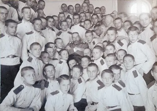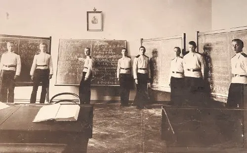 Годы были ещё глубоко советские, слово «кадет» считалось чуть ли не ругательным, так что удивлению моему не было предела, пришлось дедушке рассказать, что это вовсе не те кадеты, которые «кадюки». Так и узнал, что мой дед учился в кадетском корпусе – он называл его Суворовским. Рассказывал, что это была «особая» гимназия: классическая, но жили там, «как в казарме», и учили военному делу – военной дисциплине, строевому делу, рытью окопов, несению караулов, наставлениям и уставам, учили обращаться с трёхлинейкой и винтовкой Бердана № 2, стрельбе и штыковому бою, военной истории. Поведал, и как их, старшеклассников, как-то даже вывезли «на практику» на фронт, а в свой отпуск он побывал и у отца в части, которой тот командовал. Тогда дедушку словно прорвало: рассказывал сочно, улыбаясь, с нескрываемым удовольствием описывая кадетские проказы и шалости, строгости офицеров-воспитателей.