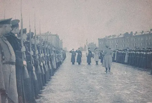 Парадный плац в сокольниках. Церемония награждения георгиевскими крестами успевших повоевать кадет Сергея Кочерги и Георгия Шуляковского