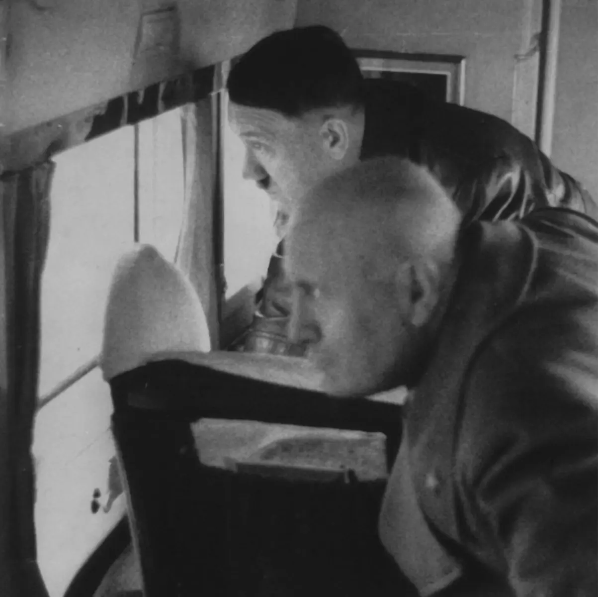 На фото: ГИТЛЕР И МУССОЛИНИ ВО ВРЕМЯ ПОЛЕТА ИЗ «СТАВКИ ЗЮД» ПОД КРОСНО В УМАНЬ (УКРАИНА), 1941 ГОД