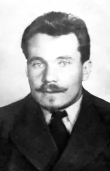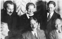 Аросев (второй ряд, слева) сопровождает Анри Барбюса (первый ряд, в центре) в поездке по СССР. В первом ряду: слева — А. Видаль, секретарь Барбюса, справа — Жан-Ришар Блок, драматург. | |