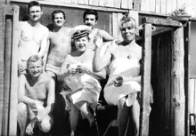 | С актрисой Ниной Корниенко и десантниками после бани. Афганистан, первая половина 1980-х годов | |