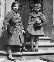 | Внизу: Ольга в первый школьный день с сестрой Еленой (слева). 1932 год | |