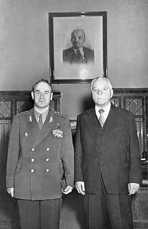Иван Серов и Клим Ворошилов. После награждения Серова орденом Кутузова І степени за выполнение специального задания правительства СССР, декабрь, 1956