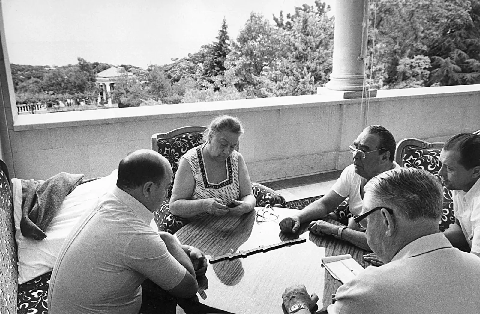На фото: Брежневы любили поиграть в домино с охраной. (Крайний слева Олег Сторонов)