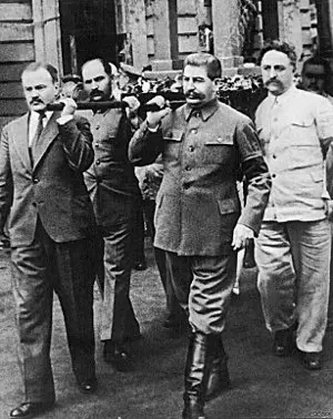 Похороны Горького 21 июня 1936 г. Сталин с членами Политбюро несёт урну с прахом писателя