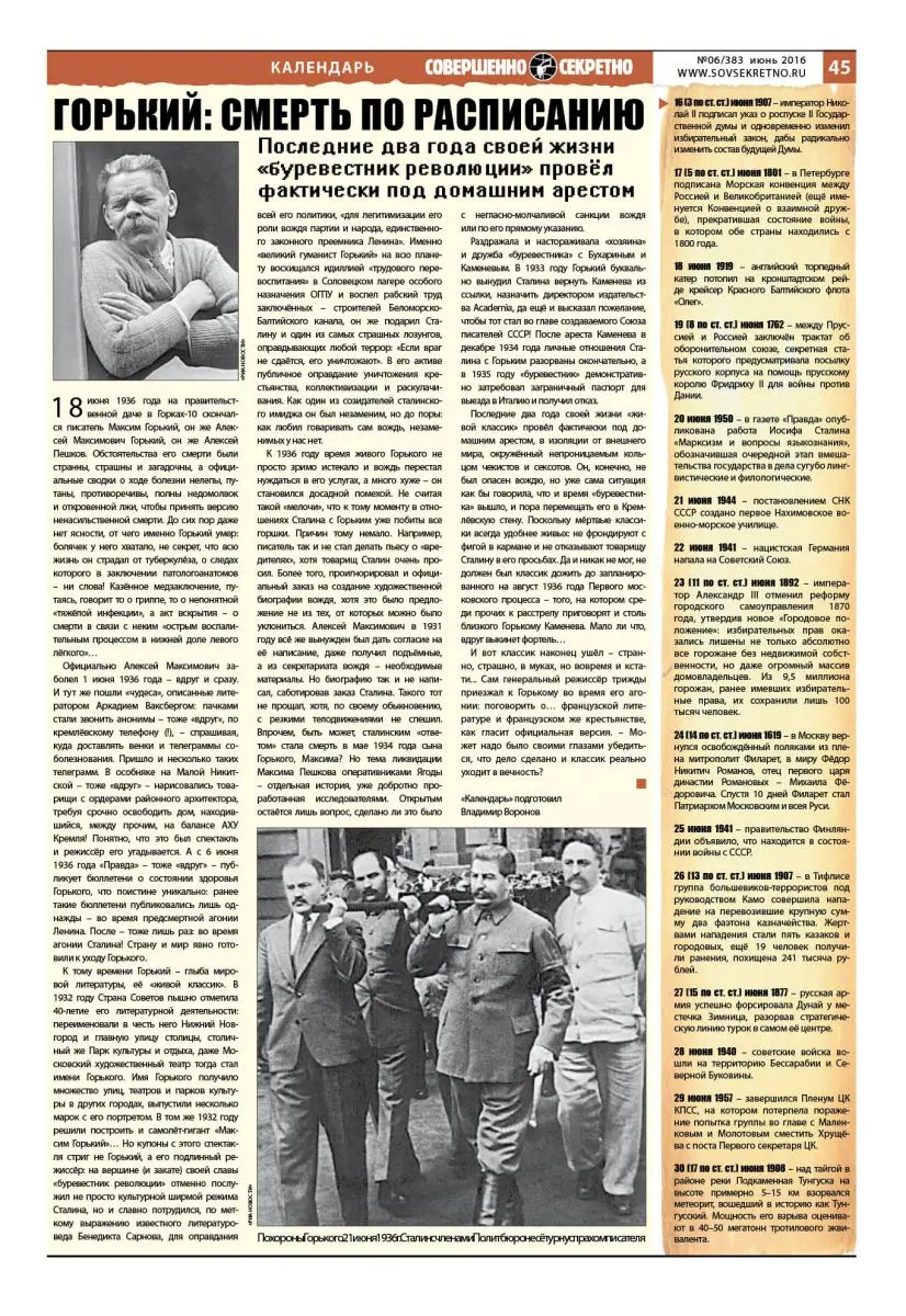 Официально Алексей Максимович заболел 1 июня 1936 года – вдруг и сразу. И тут же пошли «чудеса», описанные литератором Аркадием Ваксбергом: пачками стали звонить анонимы – тоже «вдруг», по кремлёвскому телефону (!), – спрашивая, куда доставлять венки и телеграммы соболезнования. Пришло и несколько таких телеграмм. В особняке на Малой Никитской – тоже «вдруг» – нарисовались товарищи с ордерами районного архитектора, требуя срочно освободить дом, находившийся, между прочим, на балансе АХУ Кремля! Понятно, что это был спектакль и режиссёр его угадывается. А с 6 июня 1936 года «Правда» – тоже «вдруг» – публикует бюллетени о состоянии здоровья Горького, что поистине уникально: ранее такие бюллетени публиковались лишь однажды – во время предсмертной агонии Ленина. После – тоже лишь раз: во время агонии Сталина! Страну и мир явно готовили к уходу Горького.