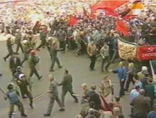 В канун 1 мая 1993 года совместную заявку на проведение демонстрации и митинга подали три организации – «Фронт национального спасения», «Трудовая Москва» и КПРФ. Весна того года была весьма богата митингами, демонстрациями, столкновениями и, разумеется, омоновскими дубинками. «Весеннее наступление» «непримиримой оппозиции» началось 23 февраля 1992 года, и все её шествия обязательно сопровождались прорывом сквозь слабо организованные и практически не противодействовавшие демонстрантам кордоны милиции и ОМОНа (последний – перед Первомаем – такой демарш имел место 23 апреля). Практически все отметили: милиция не пресекает даже самые наглые и хамские хулиганские выходки со стороны коммунистических демонстрантов, фактически развязывая им руки.