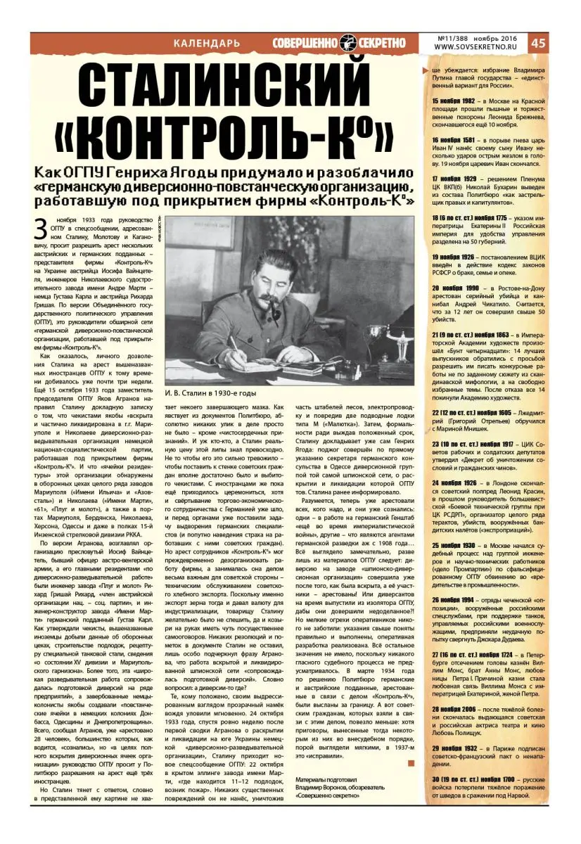 Исторический календарь 1-30 ноября