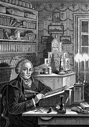 Репродукция гравюры конца XIX века «Автопортрет Андрея Тимофеевича Болотова в своём рабочем кабинете»