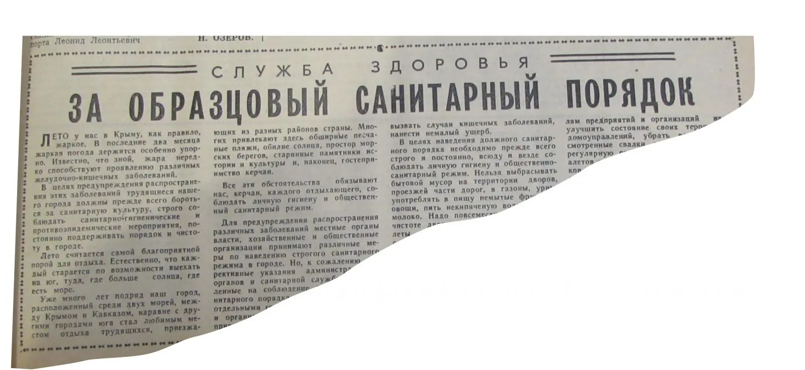 7 августа 1970 года ялтинская «Курортная газета» опубликовала передовицу «Идет ремонт ускоренный!», сопровождавшуюся фотографиями переполненного отдыхающими городского пляжа. В статье сообщалось о том, что каждый день на этом пляже загорают и купаются почти 10 тысяч отдыхающих со всех уголков Советского Союза. Эта картина была типична для летнего Крыма – в то время полуостров ежегодно посещало около 5 млн гостей и пик сезона приходился именно на июль – август.