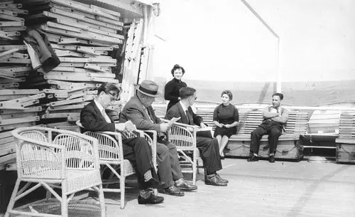 «Всем читать!» Хрущёв с охраной во время путешествия в Америку на теплоходе «Балтика», 1960
