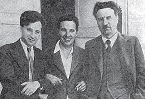 Кинооператор Владимир Нильсен, Чарли Чаплин и Борис Шумяцкий, США (1935 г.)