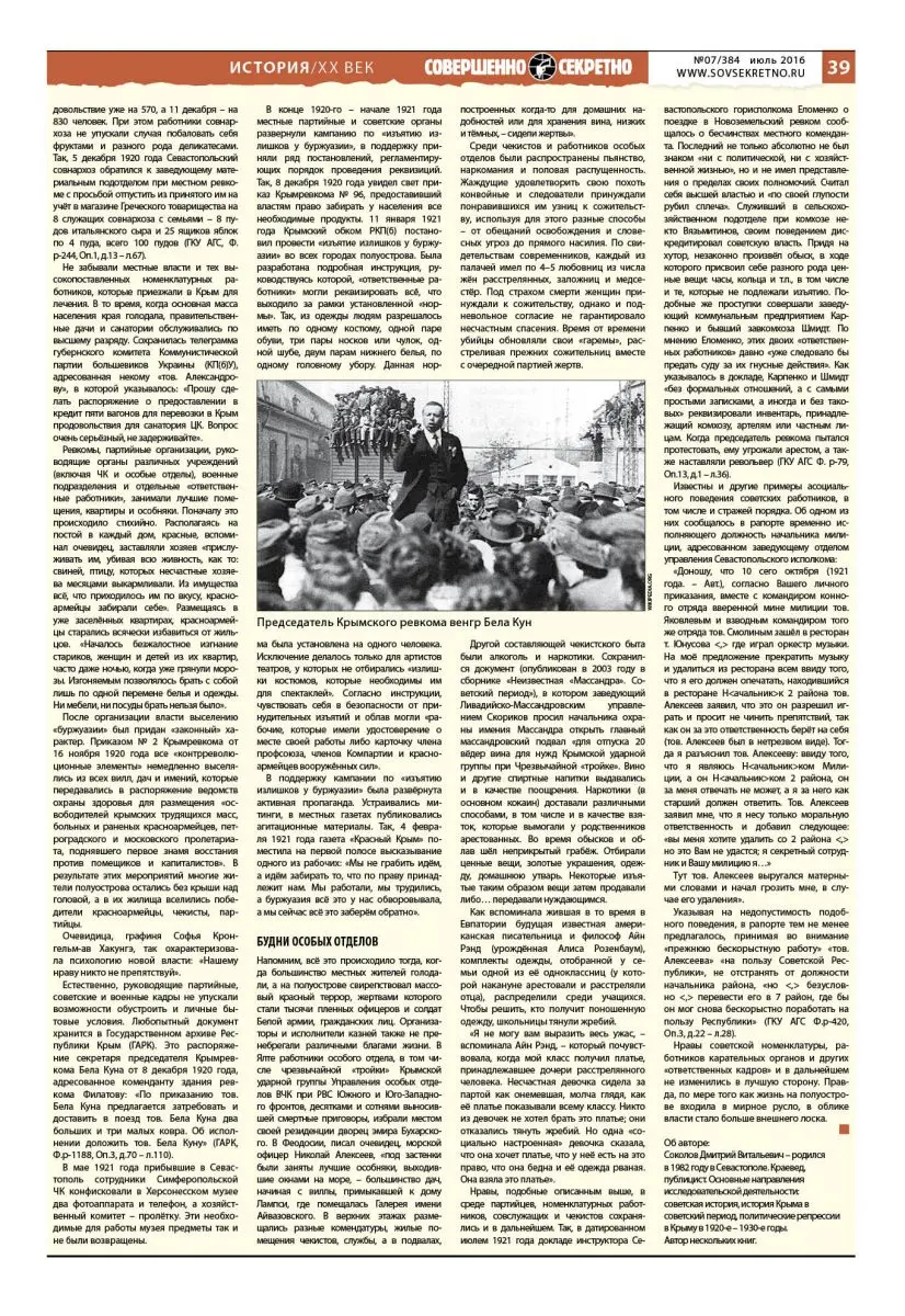 Естественно, руководящие партийные, советские и военные кадры не упускали возможности обустроить и личные бытовые условия. Любопытный документ хранится в Государственном архиве Республики Крым (ГАРК). Это распоряжение секретаря председателя Крымревкома Бела Куна от 8 декабря 1920 года, адресованное коменданту здания ревкома Филатову: «По приказанию тов. Бела Куна предлагается затребовать и доставить в поезд тов. Бела Куна два больших и три малых ковра. Об исполнении доложить тов. Бела Куну» (ГАРК, Ф.р-1188, Оп.3, д.70 – л.110).
