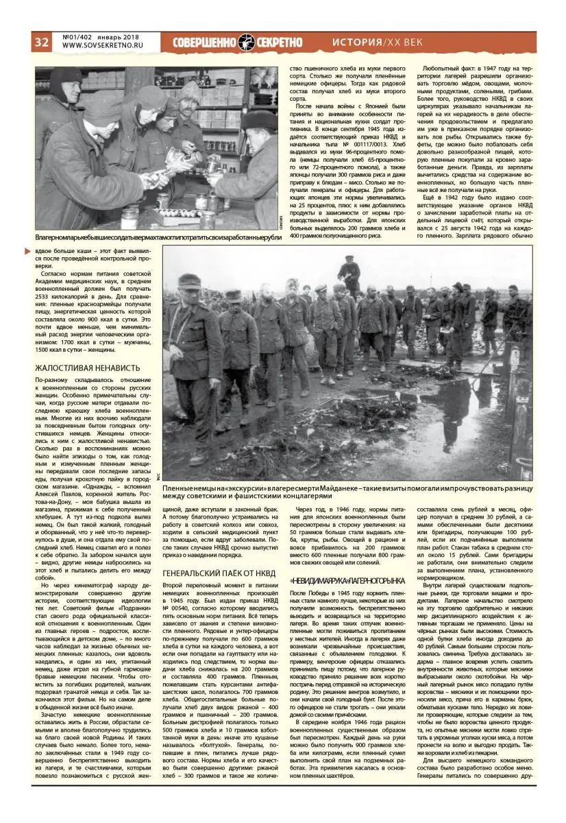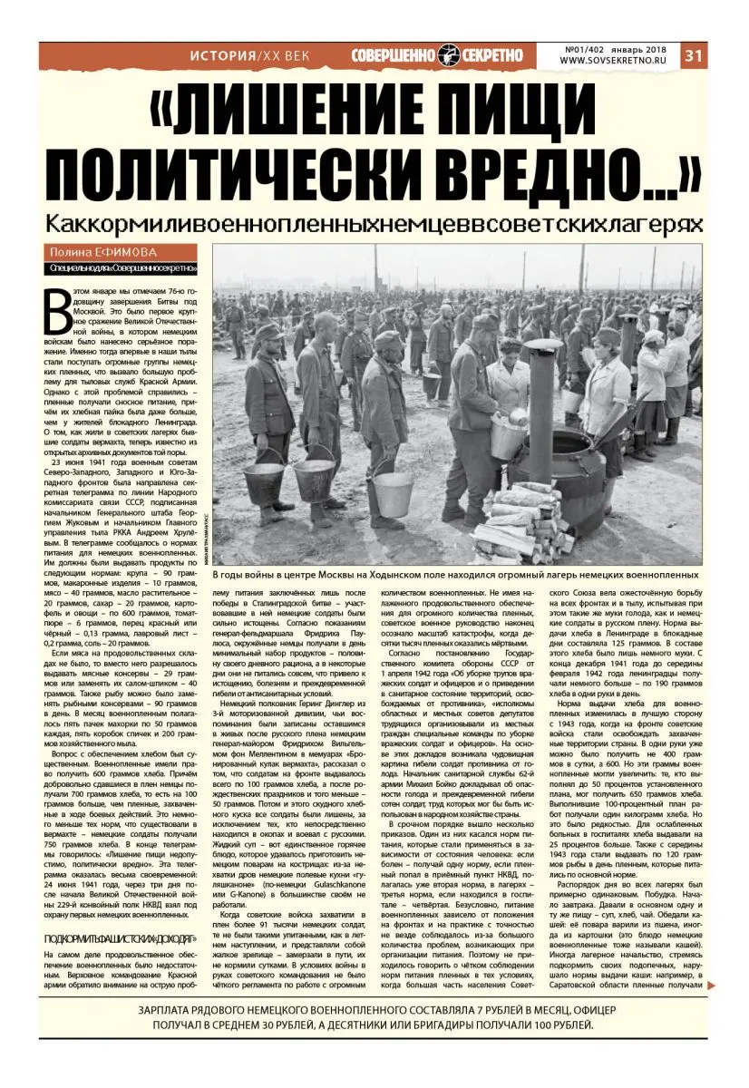 В этом январе мы отмечаем 76-ю годовщину завершения Битвы под Москвой. Это было первое крупное сражение Великой Отечественной войны, в котором немецким войскам было нанесено серьёзное поражение. Именно тогда впервые в наши тылы стали поступать огромные группы немецких пленных, что вызвало большую проблему для тыловых служб Красной Армии. Однако с этой проблемой справились – пленные получали сносное питание, причём их хлебная пайка была даже больше, чем у жителей блокадного Ленинграда.