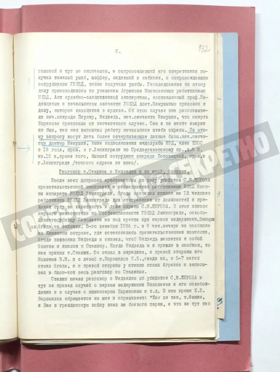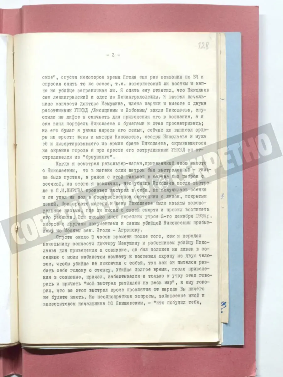 Скорее всего, допросив Николаева, Сталин уже знал реальные мотивы убийства. И его совершенно не интересовало уголовное расследование. Все протоколы допросов и иные документы, изготовленные начиная с 3 декабря, служили одной цели – подтвердить определённую Сталиным и Ежовым схему. В фонде Ежова, равно как и в других уже рассекреченных фондах, нет ни плана места преступления, ни протокола допроса Николаева Сталиным, ни малейшего намёка на разработку иных, кроме политических, версий случившегося. А вот противоречий в документах вполне достаточно…