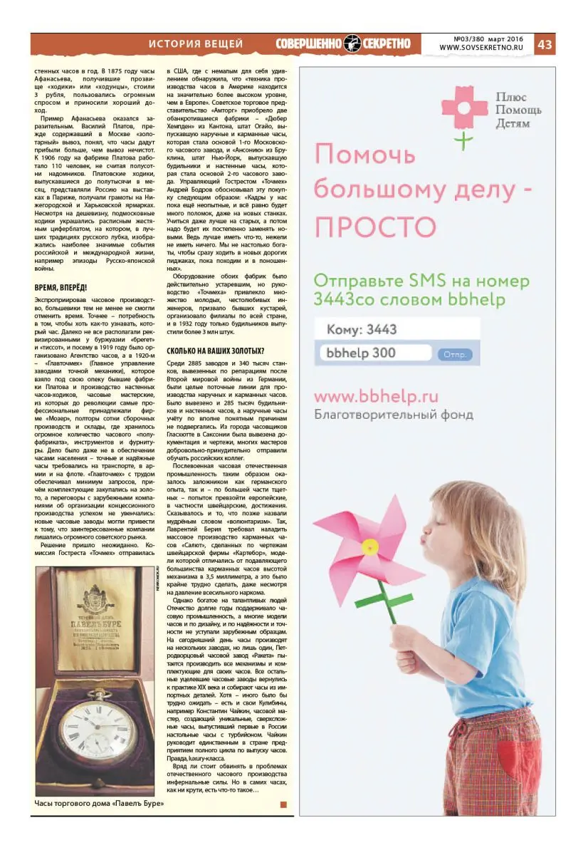 Экспроприировав часовое производство, большевики тем не менее не смогли отменить время. Точнее – потребность в том, чтобы хоть как-то узнавать, который час. Далеко не все располагали реквизированными у буржуазии «брегет» и «тиссот», и посему в 1919 году было организовано Агентство часов, а в 1920-м – «Главточмех» (Главное управление заводами точной механики), которое взяло под свою опеку бывшие фабрики Платова и производство настенных часов-ходиков, часовые мастерские, из которых до революции самые профессиональные принадлежали фирме «Мозер», полторы сотни сборочных производств и склады, где хранилось огромное количество часового «полуфабриката», инструментов и фурнитуры. Дело было даже не в обеспечении часами населения – точные и надёжные часы требовались на транспорте, в армии и на флоте. «Главточмех» с трудом обеспечивал минимум запросов, причём комплектующие закупались на золото, а переговоры с зарубежными компаниями об организации концессионного производства успехом не увенчались: новые часовые заводы могли привести к тому, что заинтересованные компании лишались огромного советского рынка.