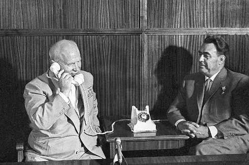 Хрущёв разговаривает по телефону с космонавтами Николаевым и Поповичем