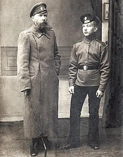 Но это вскоре забылось – был ещё мал. Уже позже увидел в альбоме плохонькую копию старой фотографии: пожилой бородатый офицер в дореволюционной форме и рядом с ним совсем ещё мальчишка в перепоясанной гимнастёрке, тоже в погонах. Спросил деда, кто это, услышал неожиданное: «Мой папа и я. Это 1917 год, я тогда учился в кадетском корпусе. Папа на побывку после ранения с фронта вырвался, а может, я к нему на каникулы приехал, вот мы в ателье и сфотографировались…»