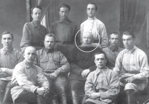 П.К. Воронов (в центре) среди однополчан во время Гражданской войны