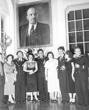 Сотрудник аппарата военно-морского атташе, капитан-лейтенант Виктор Любимов (третий справа) с супругой Валентиной (четвёртая справа). Вашингтон. 1954