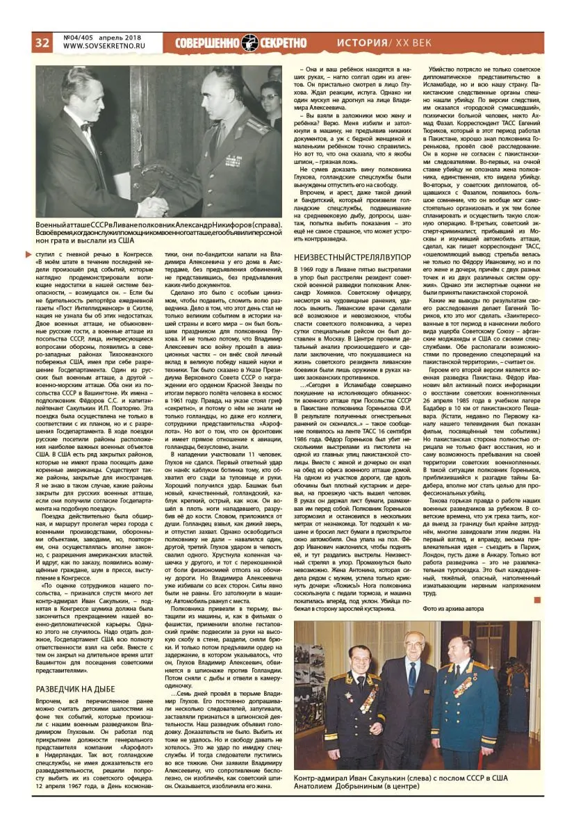Впрочем, всё перечисленное ранее можно считать детскими шалостями на фоне тех событий, которые произошли с нашим военным разведчиком Владимиром Глуховым. Он работал под прикрытием должности генерального представителя компании «Аэрофлот» в Нидерландах. Так вот, голландские спецслужбы, не имея доказательств его разведдеятельности, решили попросту выбить их из советского офицера.