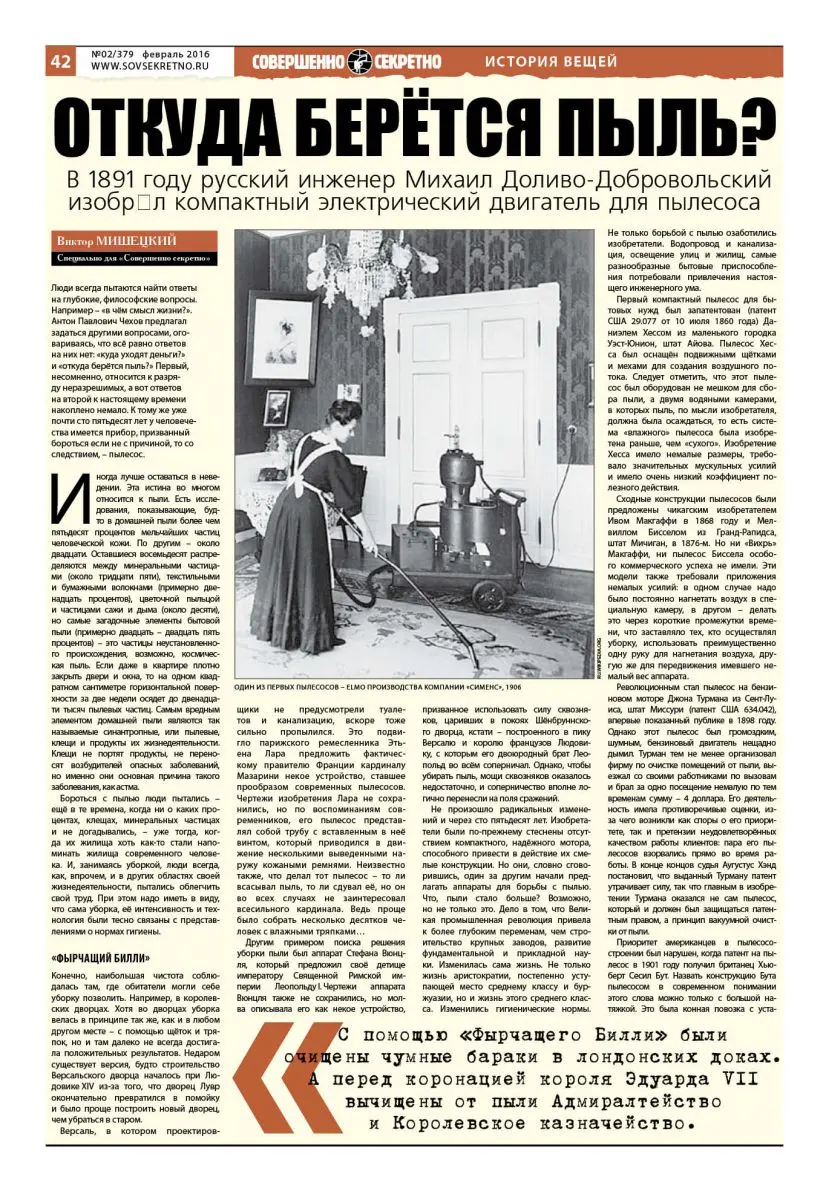 Люди всегда пытаются найти ответы на глубокие, философские вопросы. Например – «в чём смысл жизни?». Антон Павлович Чехов предлагал задаться другими вопросами, оговариваясь, что всё равно ответов на них нет: «куда уходят деньги?» и «откуда берётся пыль?» Первый, несомненно, относится к разряду неразрешимых, а вот ответов на второй к настоящему времени накоплено немало. К тому же уже почти сто пятьдесят лет у человечества имеется прибор, призванный бороться если не с причиной, то со следствием, – пылесос.