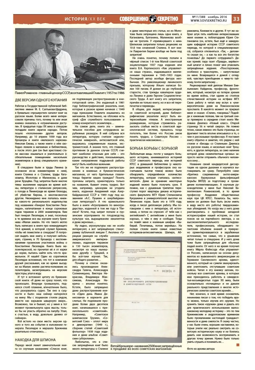 На самом деле, книга эта – замечательное пособие для сотрудников зарубежных разведок. В ней собрана вся литература, которую считали «идеологически неверной», антисоветской или, выражаясь современным языком, экстремистской. А знание того, что главный противник (в данном случае СССР) считает наиболее опасным для себя – это руководство к действию, показывающее, какие направления подрывной работы могут быть наиболее важными.