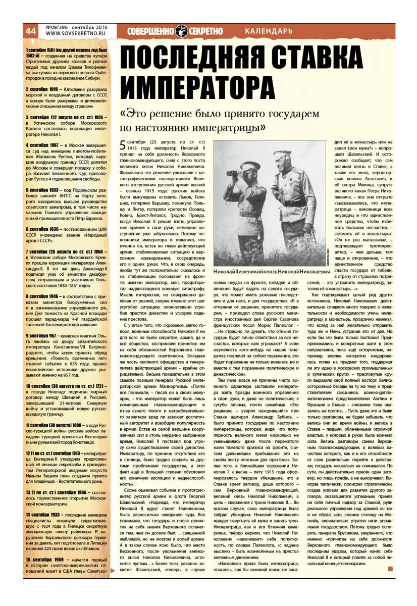 5 сентября (23 августа по ст. ст.) 1915 года император Николай II принял на себя должность Верховного главнокомандующего, сняв с этого поста великого князя Николая Николаевича. Формально это решение увязывали с катастрофическими последствиями Великого отступления русской армии весной – осенью 1915 года: русские войска были вынуждены оставить Львов, Галицию, потеряли Варшаву, покинули Польшу и Литву, потеряли крепости Осовец, Ковно, Брест-Литовск, Гродно. Правда, когда Николай II решил взять управление армией в свои руки, немецкое наступление уже забуксовало. Потому поклонники императора и полагают, что именно он, встав во главе действующей армии, стабилизировал ситуацию в верховном командовании, сосредоточив его в одних руках. Что, в свою очередь, якобы тут же положительно сказалось и на стабилизации положения на фронте: именно император, мол, предотвратил надвигавшуюся военную катастрофу. Мысль интересная, но совершенно далёкая от реалий, скорее именно этот шаг усугубил ситуацию, окончательно угробив престиж династии и ускорив падение престола.