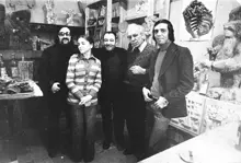 | В мастерской Э.Неизвестного на улице Гиляровского. Проводы Эрнста в эмиграцию, 1976 год.Слева направо: Борис Жутовский, его дочь Ирина, Эрнст Неизвестный, Даниил Данин, Пётр Вегин | |