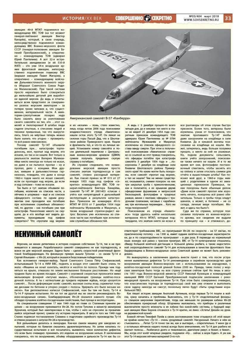 Как оказалось, именно в тот день самолёты-торпедоносцы Ту-14Т 49-го минно-торпедного авиационного полка (МТАП) ВВС Тихоокеанского флота, базировавшиеся на аэродроме Кневичи (38 км северо-восточнее Владивостока), выполняли вылет на учебное бомбометание (или торпедометание) на морской полигон в заливе Петра Великого. И после возвращения торпедоносцев на родной аэродром одного не досчитались: пропал Ту-14Т № 2901403. Экипаж: лётчик – лейтенант Валерий Мужжавлёв, штурман – лейтенант Юрий Макричук и воздушный стрелок – матрос Евгений Василюк, всем по 22 года. При возвращении с полигона торпедоносец словно испарился. Сопоставив фрагменты информации, в штабах сразу поняли: никаких американских нарушителей на сей раз не было и в помине, дежурная пара истребителей 535-го ИАП в упор расстреляла свой же самолёт.