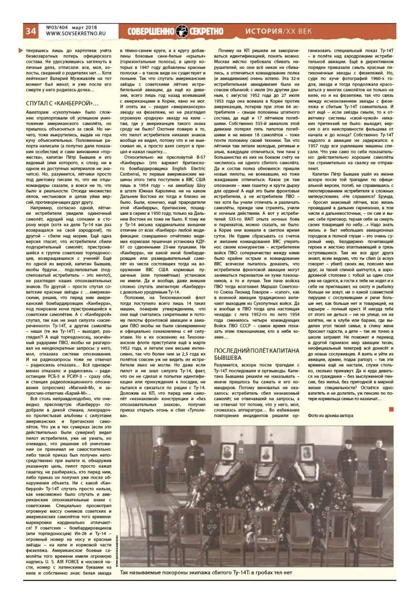 Всё столь неправдоподобно, что очевидно: пресловутую «Канберру» подобрали в дикой спешке, лихорадочно пролистывая альбомы с силуэтами американских и британских самолётов. Что уж в тех сумерках (если это действительно были сумерки!) видел пилот истребителя, уже не узнать, но очевидно, что решение об уничтожении он принимал не самостоятельно: либо такой приказ был получен непосредственно при вылете и, обнаружив указанную цель, пилот просто нажал гашетку, не разбираясь, кто перед ним, либо приказ он получил уже после обнаружения объекта. Ни с какой «Канберрой» Ту-14Т спутать просто нельзя, как невозможно было спутать и американские опознавательные знаки с советскими. Специально просмотрел огромную массу снимков советских и американских самолётов того времени: маркировки кардинально отличаются! У советских – бомбардировщиков (или торпедоносцев) Ил-28 и Ту-14 – огромный номер на носу и красные