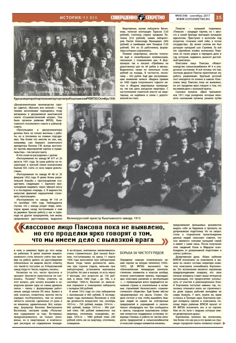 Определяя главную политическую линию партии на вторую пятилетку (1933–1937), ЦК ВКП(б) высказался так: «Окончательная ликвидация капиталистических элементов и классов вообще, полное уничтожение причин, порождающих классовое различие и эксплуатацию <…> превращение всего трудящегося населения страны в сознательных и активных строителей бесклассового социалистического общества». Ещё более жёстко сформулировал эту мысль Сталин: «Задача состоит в том, чтобы вышибить бывших людей из наших же собственных предприятий и учреждений и окончательно обезвредить их». Как сообщалось в прессе, городское кыштымское собрание полностью поддержало установку товарища Сталина, и работа по чистке аппаратов предприятий и сельхозкомбинатов от классово чуждых элементов началась.