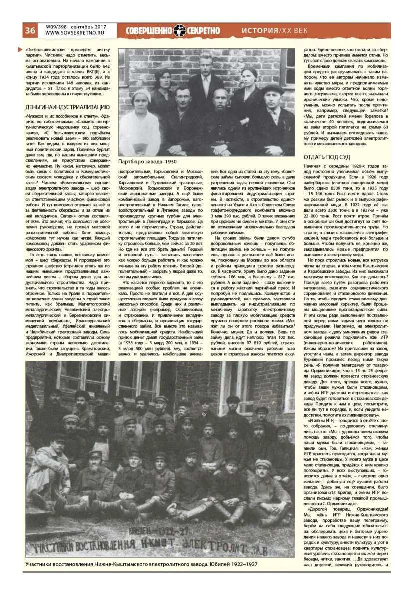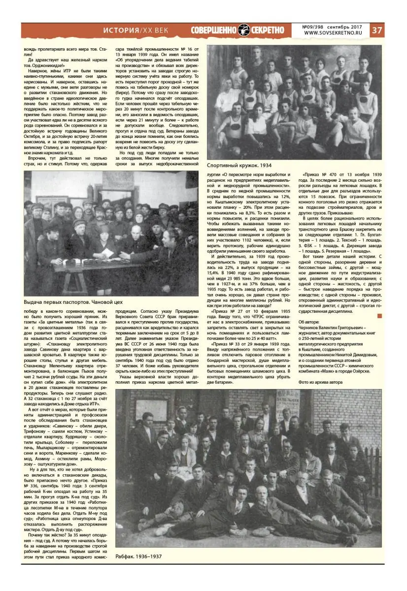 Но пока строились новые, вся нагрузка легла на старые, в том числе Кыштымские и Карабашские заводы. Из них выжимали максимум возможного. Как это делалось? Прежде всего путём разогрева рабочего энтузиазма, развития социалистического соревнования и стахановского движения. На то, чтобы придать стахановскому движению массовый характер, были брошены мощнейшие пропагандистские силы. И эти силы ради выполнения поставленной перед ними задачи чего только не придумывали. Например, на электролитном заводе к делу умножения рядов стахановцев решили подключить жён ИТР (инженерно-технических работников). Каким образом? Их пригласили на завод, угостили чаем, а затем директор завода Курчавый произнёс перед ними такую речь. «Я получил телеграмму от товарища Орджоникидзе, что с 15 по 25 февраля завод должен провести стахановскую декаду. Для этого, прежде всего, нужно, чтобы ваши мужья были стахановцами, и жёны ИТР должны интересоваться, как завод будет готовиться к стахановской декаде. Придите к нам в цеха, посмотрите, всё ли тут в порядке, и, если увидите недостатки, помогите их ликвидировать».