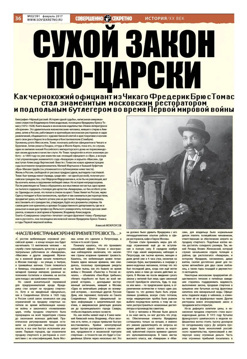 Как чернокожий официант из Чикаго Фредерик Брюс Томас стал знаменитым московским ресторатором и подпольным бутлегером во время Первой мировой войны
