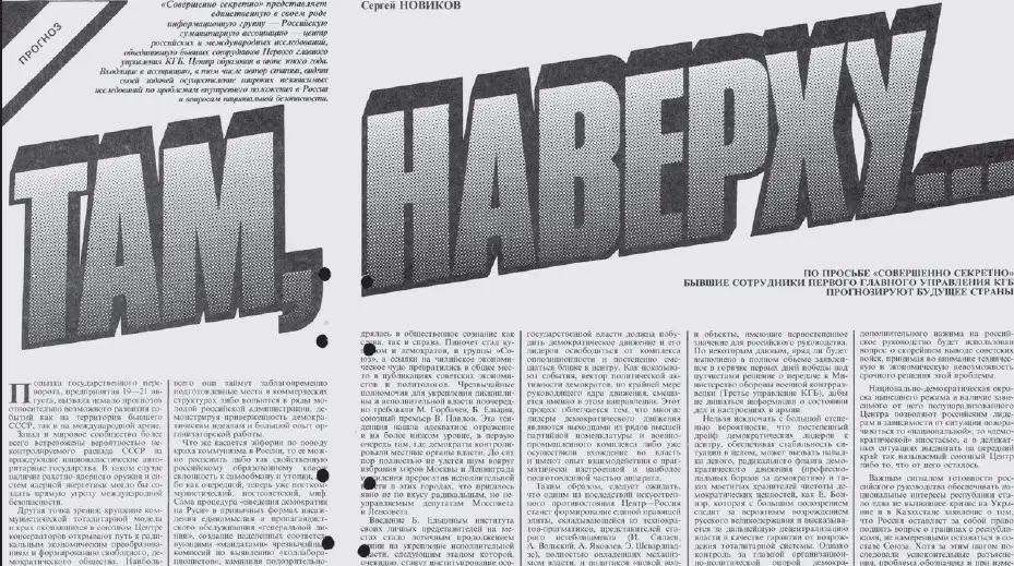 В ноябре 1991 года газета «Совершенно секретно» давала прогноз будущего страны после ГКЧП