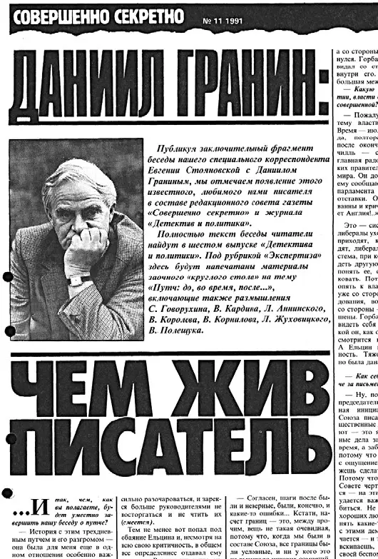 Из беседы Евгении Стояновской с писателем Даниилом Граниным, ставшим членом редакционного совета газеты «Совершенно секретно»