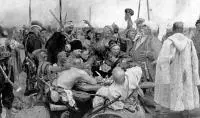 «Постой же ты, чертов кулак! – подумал Бульба про себя, – ты у меня будешь знать!» И положил тут же отомстить кошевому. Сговорившись с тем и с другим, задал он всем попойку, и хмельные козаки, в числе нескольких человек, повалили прямо на площадь, где стояли привязанные к столбу литавры, в которые били сбор на раду…»