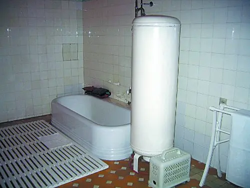 Там же в санузле я обратил внимание на ещё два предмета бытовой техники иностранного производства. Это переносной белый калорифер и электрический водонагреватель накопительного типа фирмы Siemens Schuckertwerke GmbH, сейчас более известной как Siemens AG. Этот монстр германской индустрии, производивший всё – от телефонов до оружия, был основан Вернером фон Сименсом в далёком 1847 году. И Сталин охотно пользовался его продукцией. Кстати, в его ванной три душа: неподвижно закреплённый стационарный, работающий от системы центрального водоснабжения, присоединённый к нему душ со шлангом и стационарный душ от упомянутого нами водонагревателя Siemens.