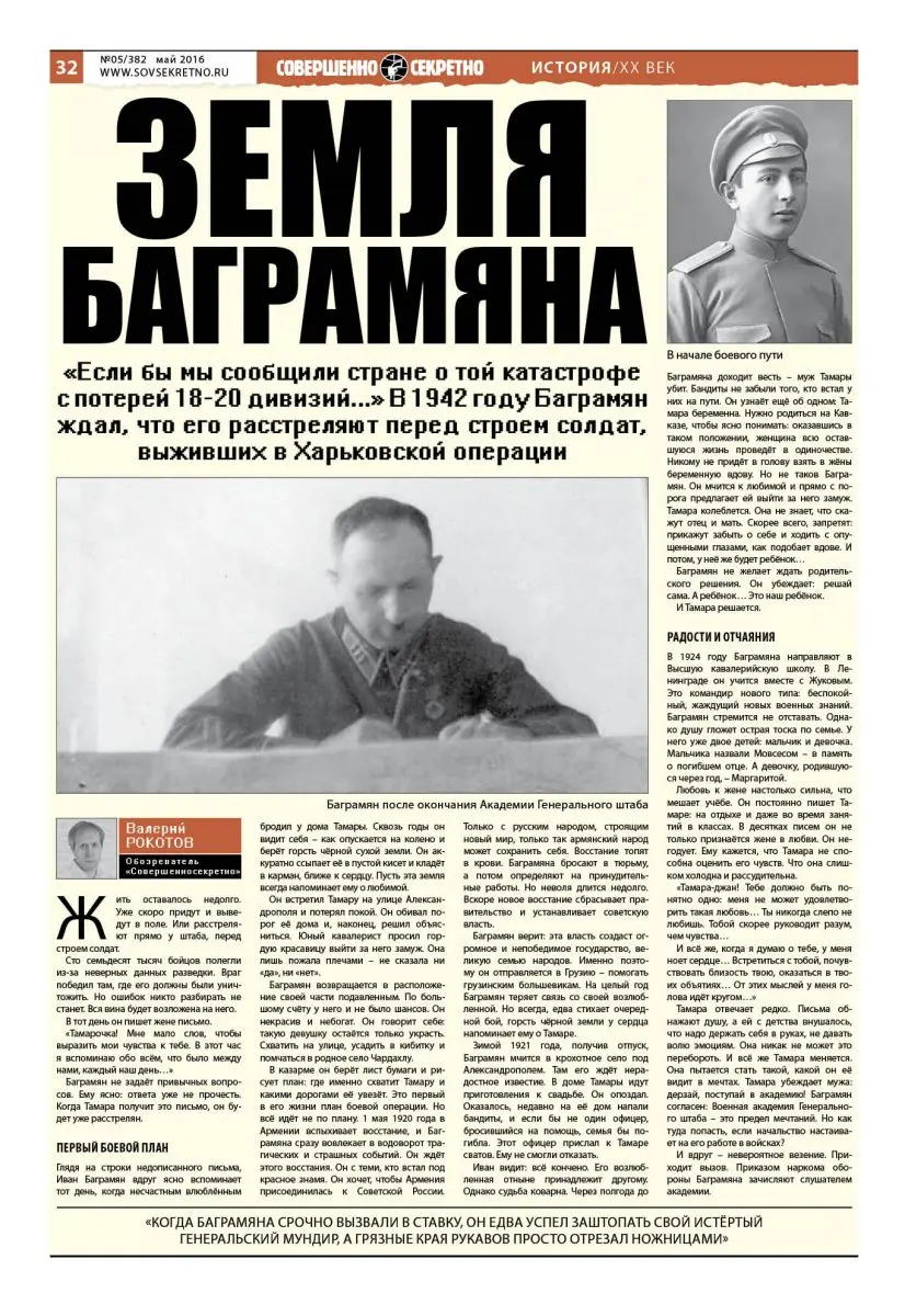 В 1941 году его военная карьера шла стремительно. Уже в августе он стал генерал-майором, а в декабре – генерал-лейтенантом. Но все могло рухнуть в одночасье, после того, как весной и летом 1942 года катастрофическим поражением закончилась разработанная им, как начальником штаба фронта, Харьковская наступательная операция. Всю ответственность попытались возложить на него. Баграмян мог ожидать чего угодно, вплоть до ареста и расстрела. Но письмо Сталина командованию Юго-Западного фронта от 26 июня 1942 года всё расставило на свои места: