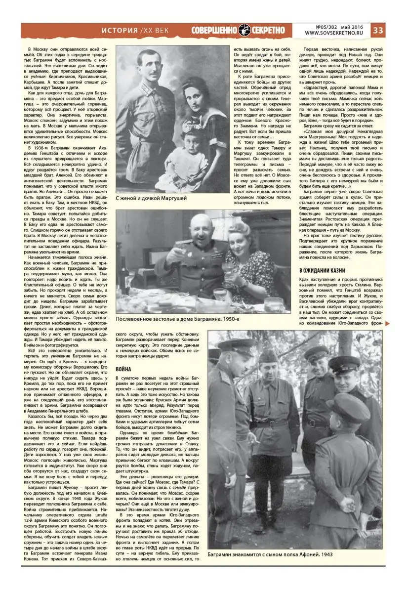 К тому времени Баграмян знает одно: Тамару и Маргушу эвакуировали в Ташкент. Он посылает туда телеграммы и письма – просит разыскать семью. Но ответа всё нет. О Мовсесе ему уже доложили: сын воюет на Западном фронте. А вот жена и дочь исчезли в огромном людском потоке, хлынувшем в тыл.
