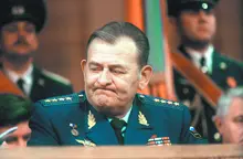 Главком ВВС России в 1998–2002 гг. генерал армии Анатолий Корнуков. Министр обороны Украины в 1996–2001 гг. генерал армии Александр Кузьмук (внизу) |