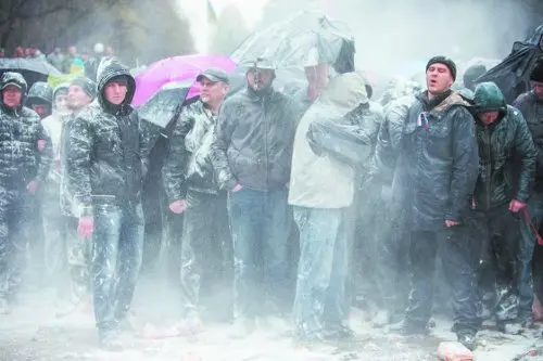 Людей, протестовавших против неонацистских «ценностей» Майдана, шесть часов забрасывали пакетами с мукой, яйцами и комьями мёрзлой земли. 17 человек получили ранения