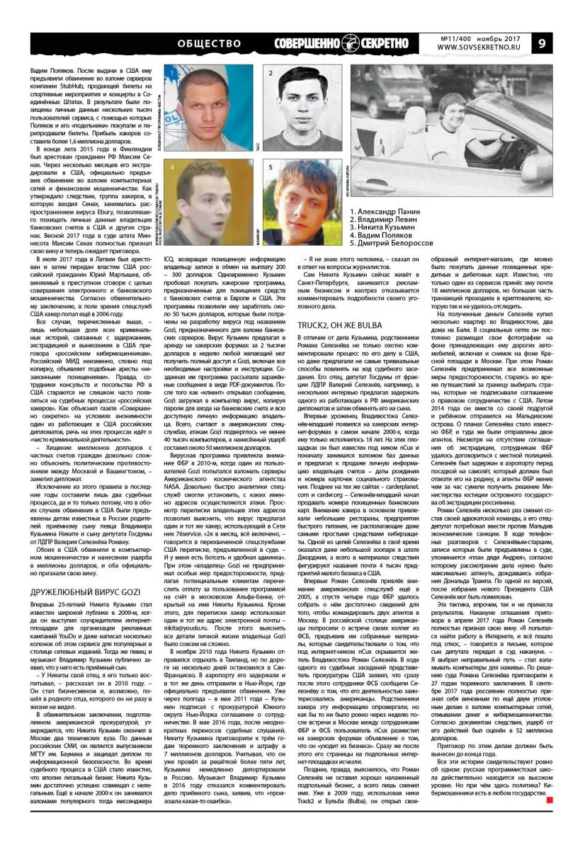 Газета «Совершенно секретно» решила «присоединиться» к этой шумной кампании и напомнить о самых громких уголовных делах, в которых действительно фигурировали «российские киберпреступники». Но вот насколько их действия действительно были связаны с политикой, решать вам.