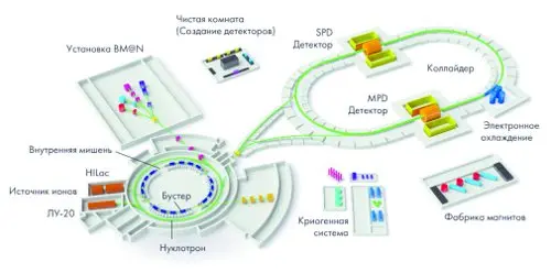 Схема строящегося в г. Дубне ускорительного комплекса НИКА (NICA) с коллайдером размером около 500 м