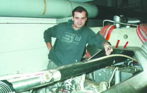 Автор во время демонтажа детектора VSAT установки DELPHI около трубы коллайдера LEP, ЦЕРН, конец 2000 года.
