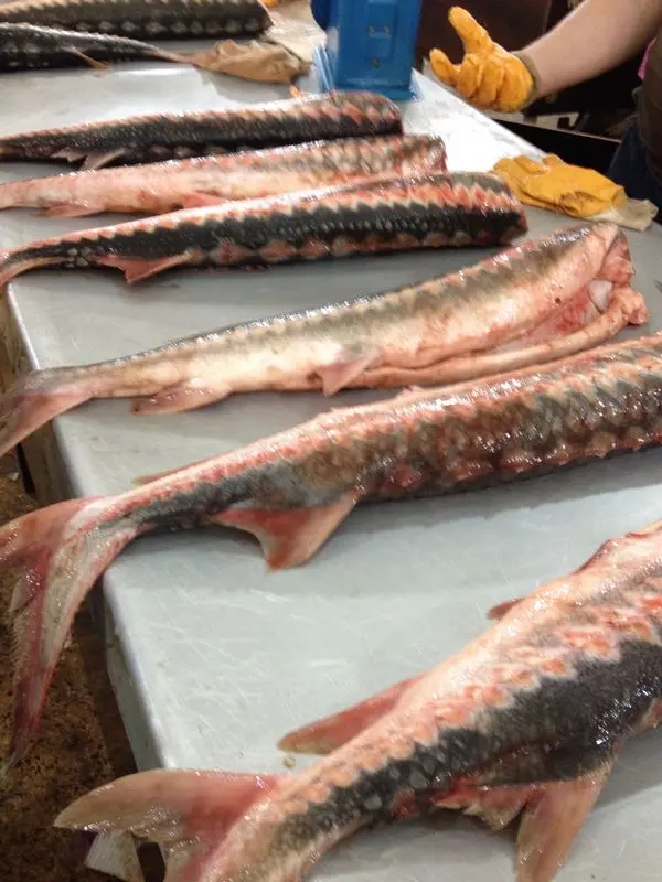 Но мужчину средних лет, стоящего за прилавком, это, кажется, мало волновало: «Берите, свежая осетрина, только сегодня утром привезли».