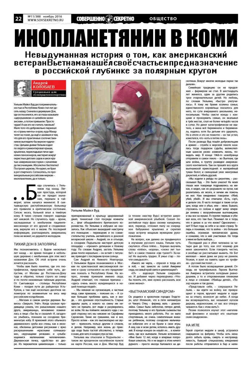 «В Коми я увидел людей, живущих в глубокой нищете, – объяснил тогда своё решение друзьям и родственникам Вуд. – У многих даже нет денег, чтобы заплатить за детский садик. Конечно, Крайний Север, Заполярье – не самый райский уголок на планете, но, оказавшись в тех местах, я сразу понял, что там нужен больше».